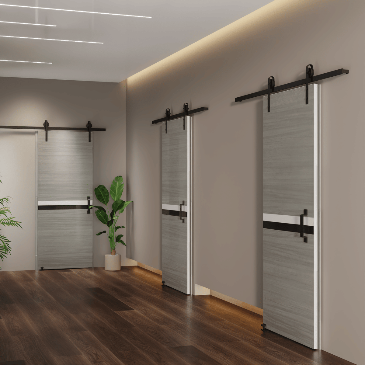 CRAZY ELF 36" x 80" Melamine Integrated Door Slab + 6.6FT Sliding Track Kit + Adjustable Floor Guider + Pull Handle, Modern Interior Door panel, Protected By 2mm Thick Melamine Layer, Moisture-proof - as Pic