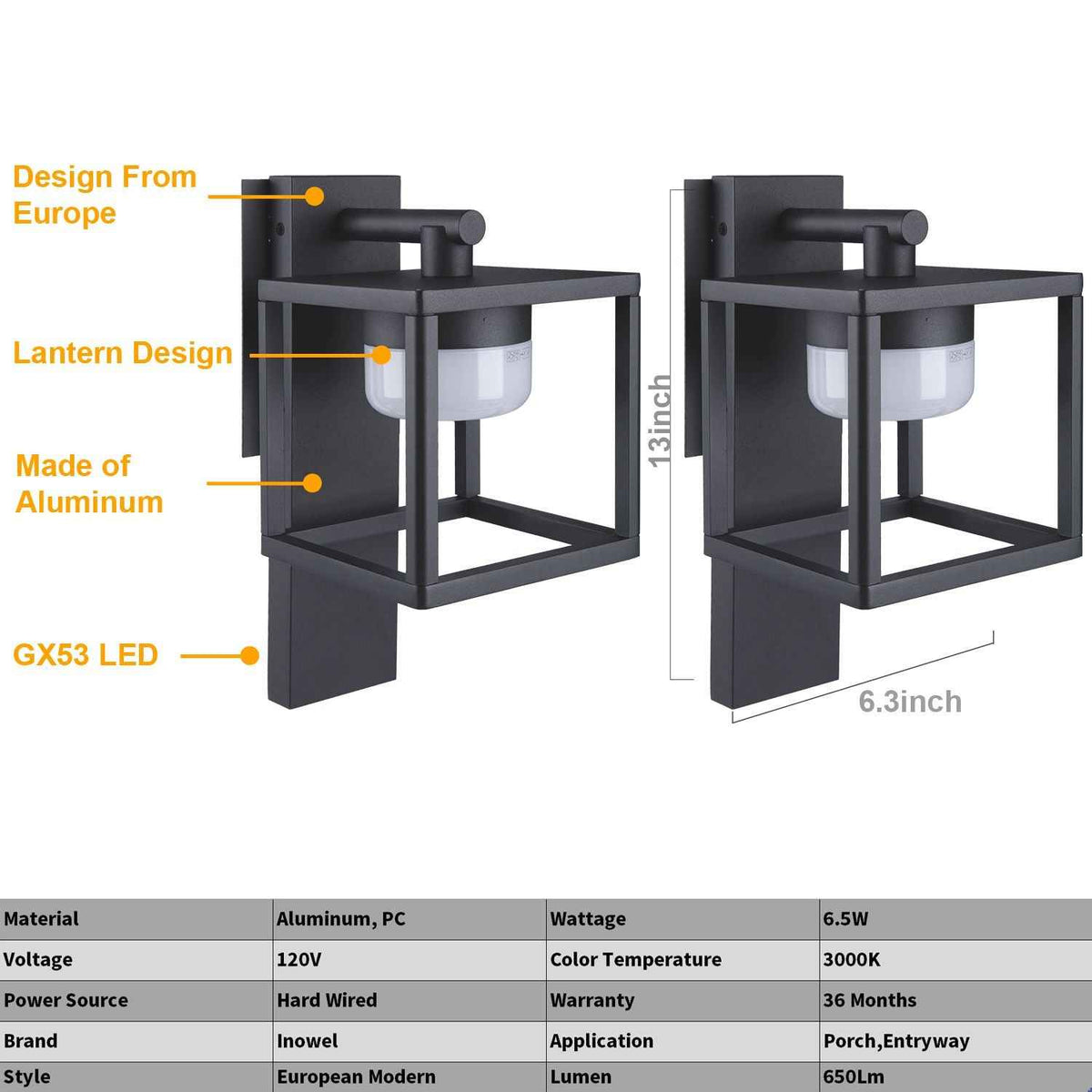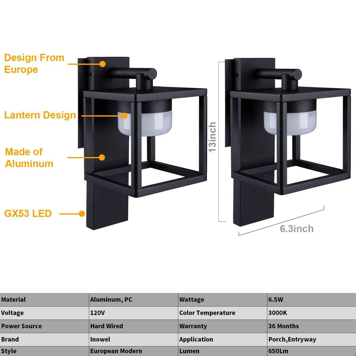 Inowel Wall Sconce Replaceable GX53 LED Bulb Porch Light 6.5W Modern Waterproof Wall Lamps 650 Lumen 3000k Warm White 36513