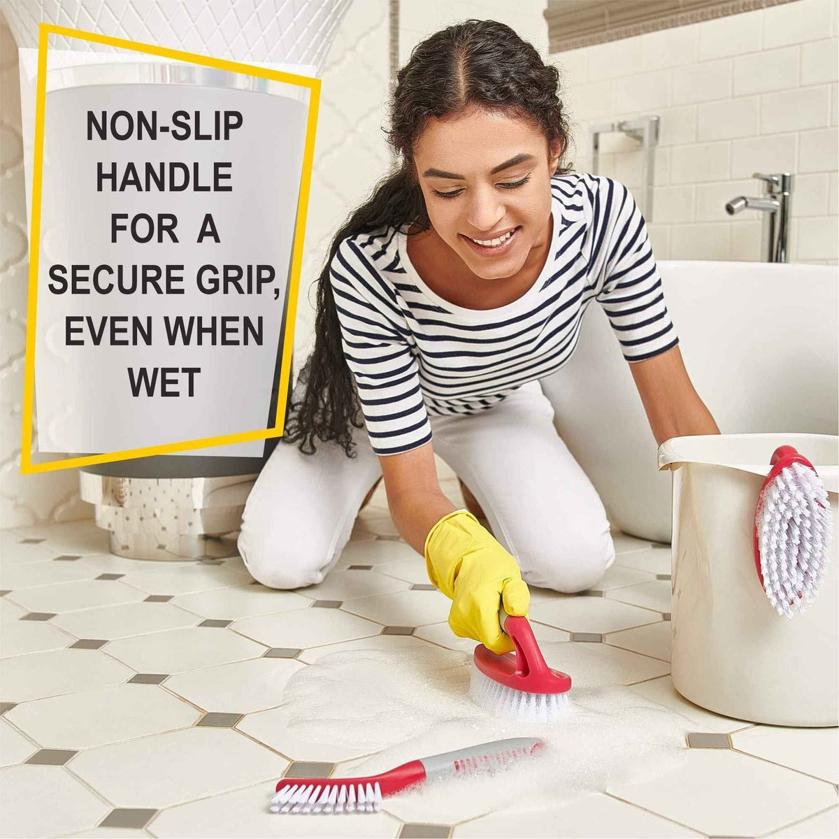 Scrub Brush Set of 3pcs Cleaning Shower Scrubber with Ergonomic Handle and Durable Bristles Grout Cleaner Brush Scrub Brushes for Cleaning Bathroom Shower Tile Kitchen Floor Bathtub Floor - Trazon