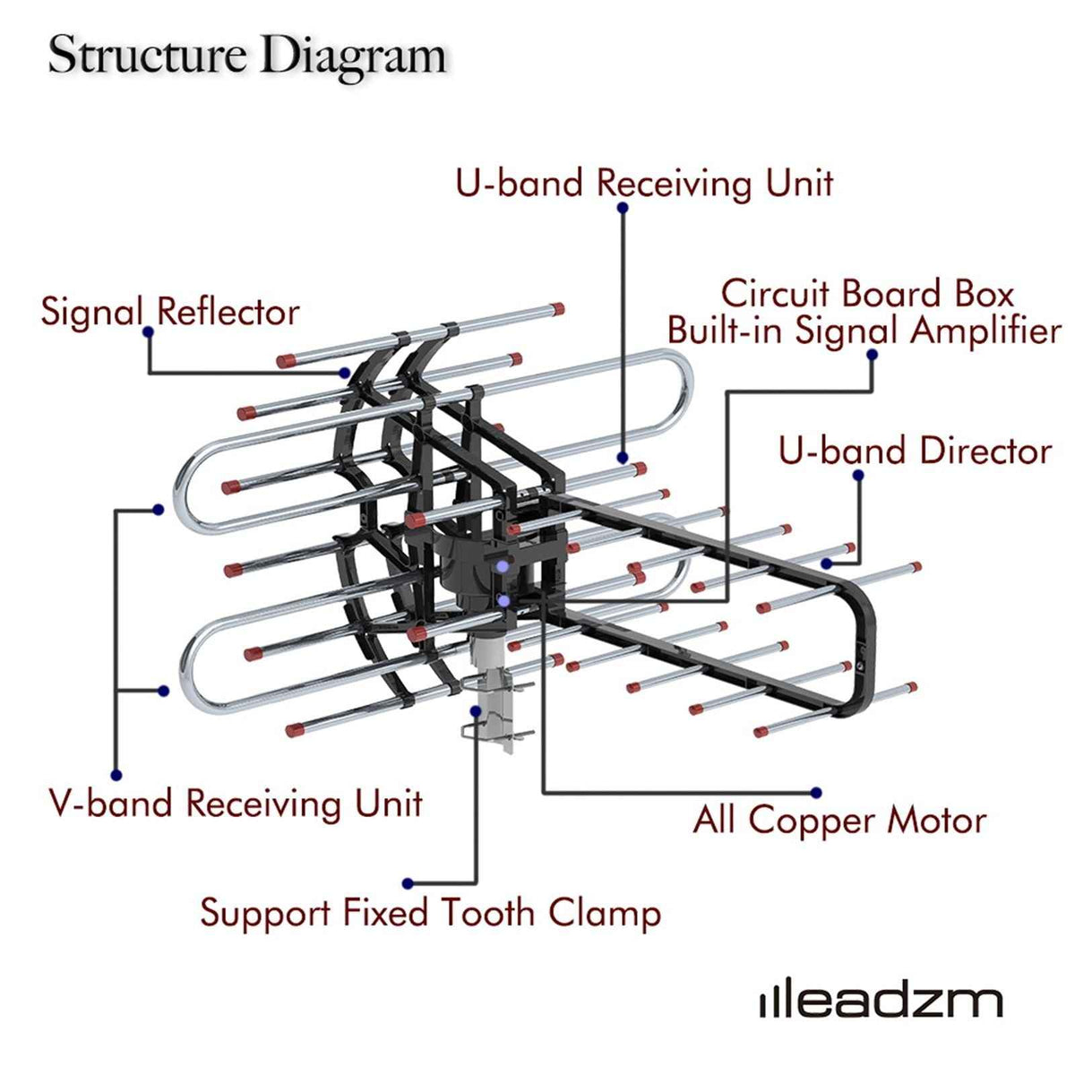 TA-851B 360°Rotation UV Dual Frequency 45-860MHz 22-38dB Open Antenna Silver - Silver